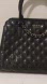 Guess black tote bag with embossed monogram logo and double handles featuring a silver-tone chain detail. Perfect for everyday use or to complement an elegant look.