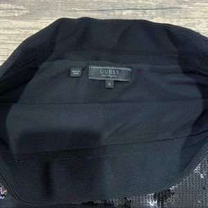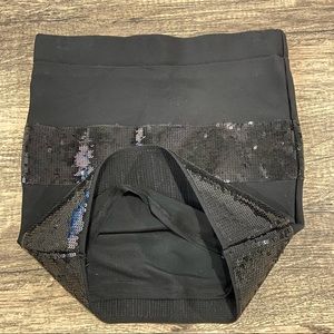 This is a tight mini skirt that hugs your butt. The material is very thick, you can even wear in the winter time. The sequin gives a little sparkle feel. It fits like XS. Probably not fit well if you have a larger hip.