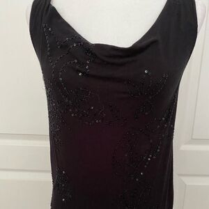 GUESS Black Sequin Racerback Top XS – Glam Night Out Statement Piece