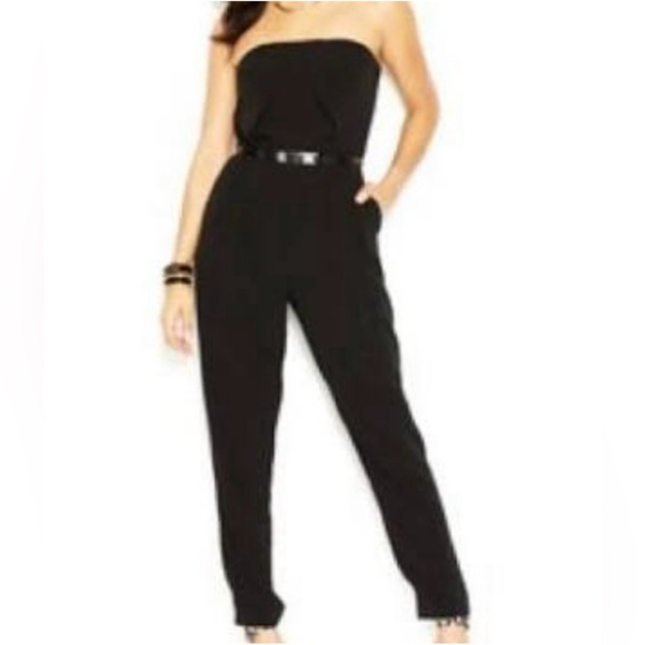 Elevate your style with this chic black strapless jumpsuit from GUESS! Perfect for a night out, special event, or a sleek casual look. Features a tailored fit with pleated detailing and a structured bodice for a flattering silhouette.