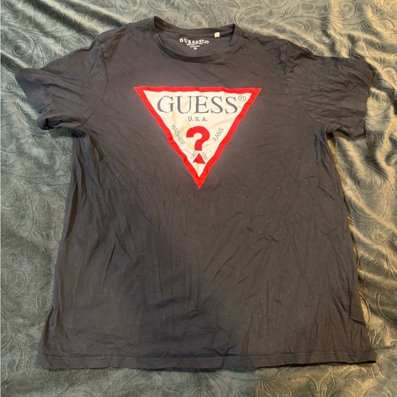 Stylish black t-shirt from GUESS, perfect for casual wear. Features a bold design for a trendy look. Rarley worn and still in excellent condition.