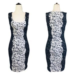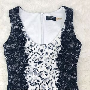 Guess Black & White Sleeveless Lace Bodycon Mini Dress