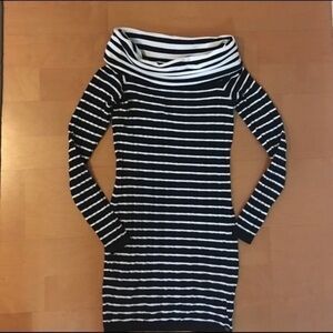 GUESS Black & White Striped king sleeve Sweater Mini Dress Medium