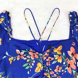 GUESS Blue Floral Cutout Bodycon Dress Long Sleeve Knee Length Slit Size 10 New