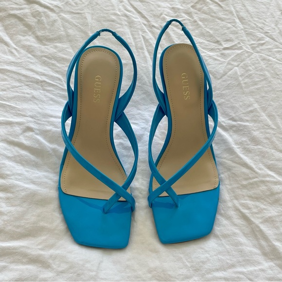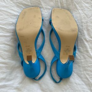 Blue, strappy, patent faux leather, mid height heels π Vintage y2k vibe ~ perfect for parties, vacation, summer nights, etc. π¦