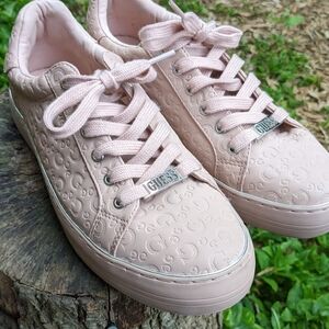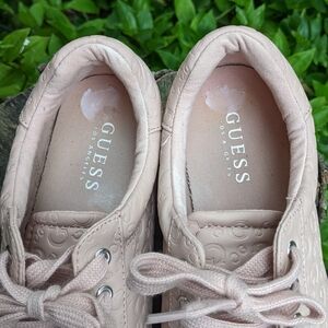 GUESS Blush Pink Designer Manmade Leather Lace Up Logo Print Sneakers