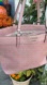 Chic GUESS tote in blush pink. Features signature logo pattern. Ideal for daily use.