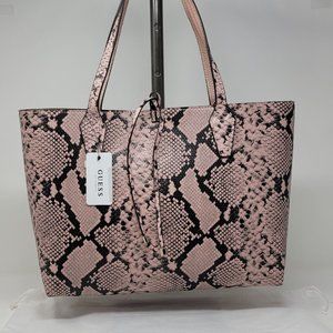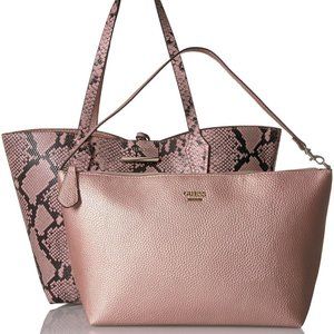 GUESS Bobbi Pink Snake Print Inside Out Reversible 3 in 1 Tote Handbag Set