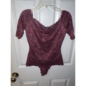 GUESS Bodysuit XXS Dara Off Shoulder Lace Cheeky Top Feminine coquette y2k New
