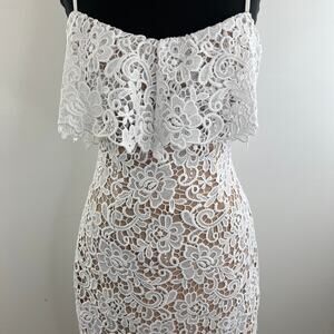GUESS Brilliant White Spaghetti Strap Nevaeh Popover Lace Dress Size S Small