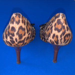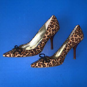 GUESS Brown Lepard Print Pointed Toe Pump Shoes with Bow Size 6M