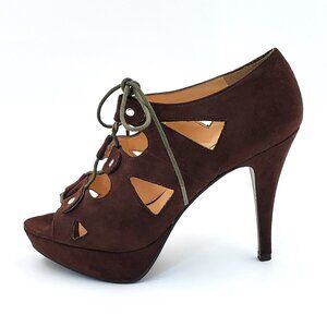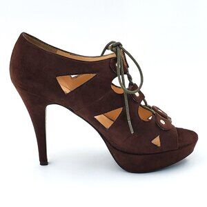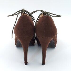 “GUESS” Brown Suede Lace-Up Platform Heels – 4 ½ Inch – Size 7 ½ M