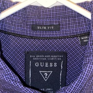 Purple GUESS shirt great condition worn one time. Size is small SLIM FIT.
