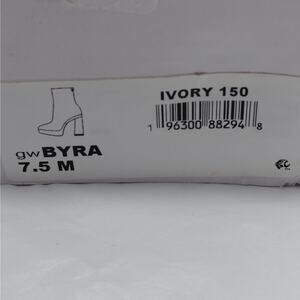 GUESS Byra Platform Ankle Boots Womens 7.5 Ivory Retro 70's Block High Heel Gogo