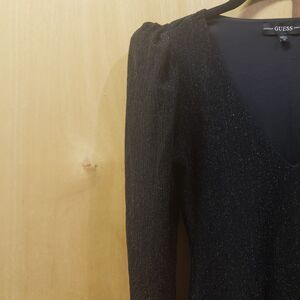 GUESS Cardi Metallic Puff Sleeve Dress Color-Black Size XS