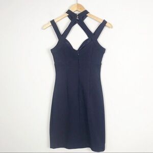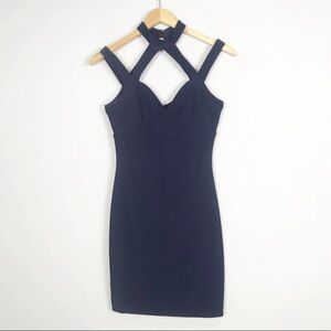 Shiny ottoman cocktail dress with a chocker like neckline, perfect for a night out. Ribbed. Fitted. Stretchy.