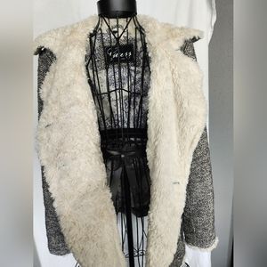 Guess fur trimmed herringbone coat