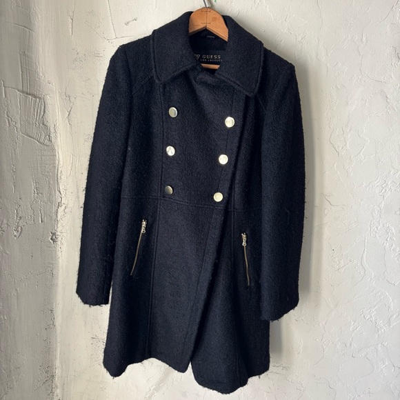 GUESS BLACK WOOL PEA COAT