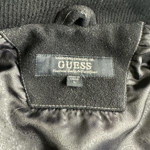GUESS Coat Jacket Wool Blend Lined Full Zip Pockets Black Mens Size Large Heavy