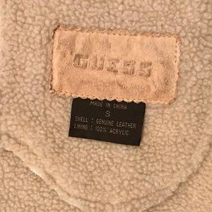 Guess leather suede dark beige jacket. Size Small. Shell - genuine leather. Lining - 100% acrylic.