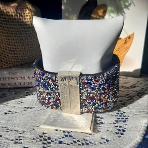 GUESS Colorful Glitter Sparkly Bedazzled Bling Crystal Magnetic Cuff Bracelet