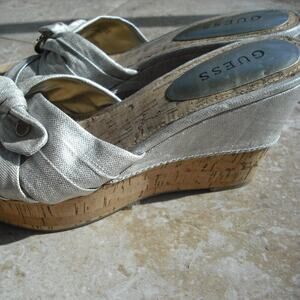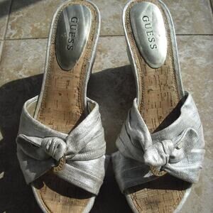 GUESS Cork Wedge Metallic Sandals size 9.5