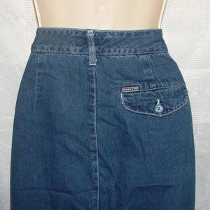 GUESS Denim Sz Jr Large Cotton Casual Wraparound Blue Jean Midi Skirt Pockets