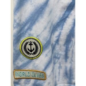 GUESS Designer T Shirt Tie-Dye Blue with Unique Patches Unisex Sz Small