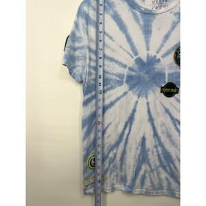 GUESS Designer T Shirt Tie-Dye Blue with Unique Patches Sz Small Unisex
