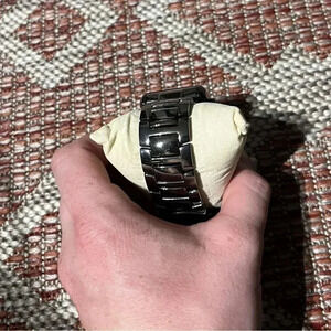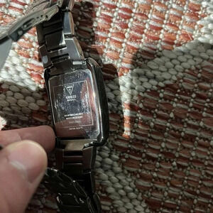 GUESS Diamond Watch Gun Metal Stainless Steel Chain Link Band Needs Battery