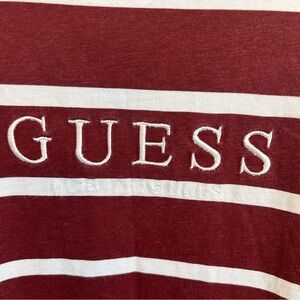 GUESS Doheny Stripe Crew T Shirt Size Large Tibetan Red Logo Tee Men’s