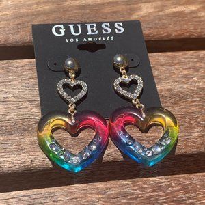 GUESS Double Heart Drop Earrings in Gold and Rainbow/ Stand loud and Proud with these beautiful Guess Rainbow earrings.