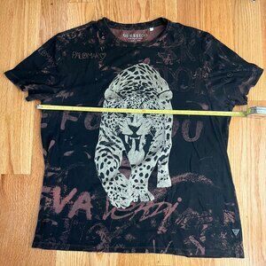 GUESS Eco Collection Leo Graffiti Tee Leopard Brown Black Men's Streetwear L