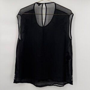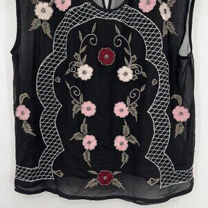 GUESS Embroidered /Embellished Sheer Black/Floral Sleeveless Top Women's XL Excellent Pre-Owned Condition. Open To Offers