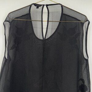 GUESS Embroidered /Embellished Sheer Black/Floral Sleeveless Top Women's XL Excellent Pre-Owned Condition. Open To Offers