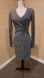 It has long sleeves and a midi length skirt and is a faux wrap metallic dew drop knit dress