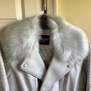 GUESS Faux Leather Faux Fur Moto Jacket Stone SZ L