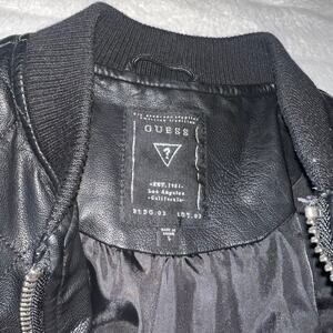 GUESS Faux Leather Quilted Bomber Jacket