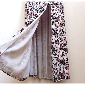 GUESS Floral On / Off shoulder Maxi Dress Pink Front Slit Smocked Walk-Through