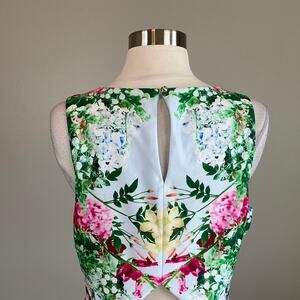 GUESS Floral Print Long Maxi Dress Size 12 Blue Sleeveless Cutout Back Sheath