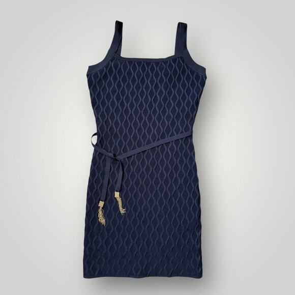 GUESS Genna Diamond Knit Sweater Dress Women's Size L Blackened Blue