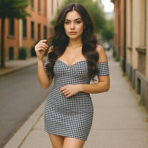 GUESS Gingham Black White Off the Shoulder Dress Womens/Juniors 4 See Measures