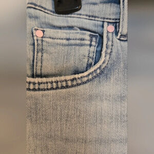 These adorable denim shorts feature a rhinestone logo back pocket and rolled cuffs. They will be a staple in her closet.