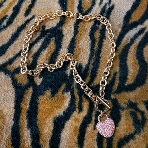 Stylish GUESS necklace with a gold chain and pink heart charm. Adds elegance to any look.Never worn im a silver girl..