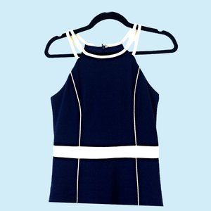 GUESS Halter Color Block Sheath Navy Dress with white piping Size 4