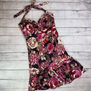 GUESS Halter Style Floral Fit and Flare Dress with Ruffle Trim Pink Black Size 3