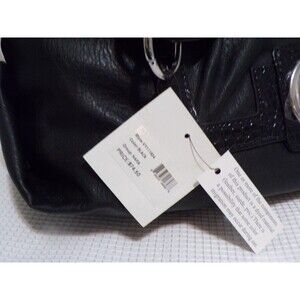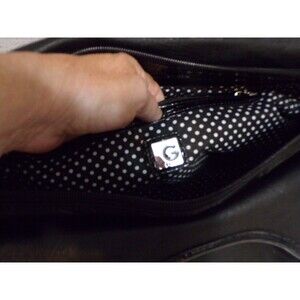 The GUESS Handbag in Black with silver accents is a stylish and versatile accessory for women. This medium-sized rectangular bag features a zip closure, black faux leather exterior, and silver hardware accents. The satchel/top handle design with inner pockets adds functionality and practicality to this designer piece. The black fabric lining complements the black exterior color, making it a classic and chic choice for any outfit.