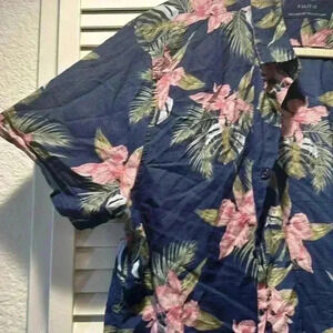 GUESS Hawaiian Shirt Mens Sz XXL Button Down Floral Print Blue And Pink Tropical