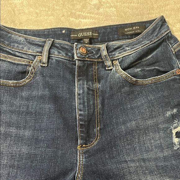 Trendy high rise jeans with a distressed look. Perfect for everyday wear.
