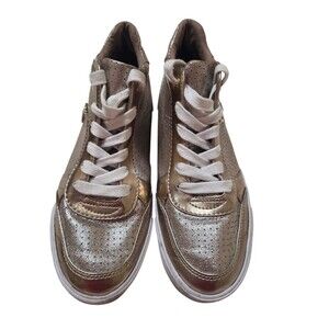 GUESS High Top Gerree Sneakers Shoes Gold Logo Lace Up Women's 7.5 S2